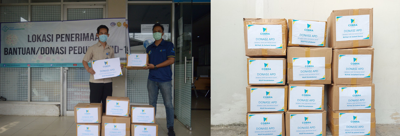 Donasi tersebut berupa penyerahan APD berupa protective suits (APD), senilai Rp 99.000.000 untuk berbagai Rumah Sakit penanganan Covid-19 diantaranya adalah RSUP Persahabatan dan Rumah Sakit Penyakit Infeksi Prof. Dr. Sulianti Saroso di DKI Jakarta sejumlah 120 paket (27/4/2020). “Sumbangan ini kami berikan mengingat tenaga kesehatan merupakan garda depan dalam menghadapi pandemi Covid-19 ini. Mereka mengeluhkan susahnya mendapat APD karena harga dipasaran yg melonjak drastis,” terang Adrian Selain Di Jakarta, PT Cobra Dental Indonesia juga mengirimkan paket serupa ke beberapa RS lain nya antara lain RS Sakina Idaman, RSUP Sardjito di Yogyakarta, & RSUD Soetomo Surabaya