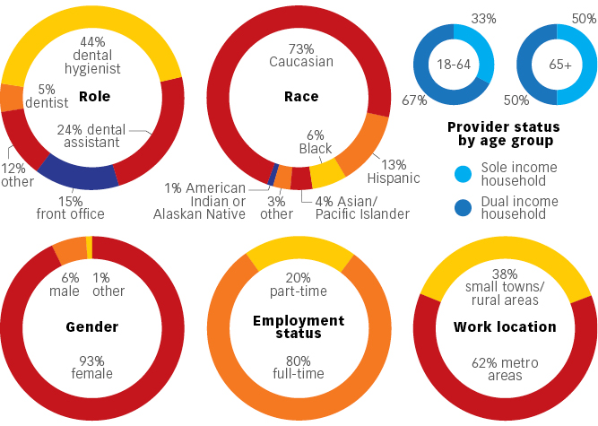 65% ahli kebersihan gigi bekerja penuh waktu. Sementara sebagian besar ahli kesehatan gigi puas dengan jadwal kerja mereka saat ini, 25% lebih memilih untuk bekerja lebih sedikit. Saat mereka berusia lebih dari 50 tahun, jumlah pekerja paruh waktu meningkat.